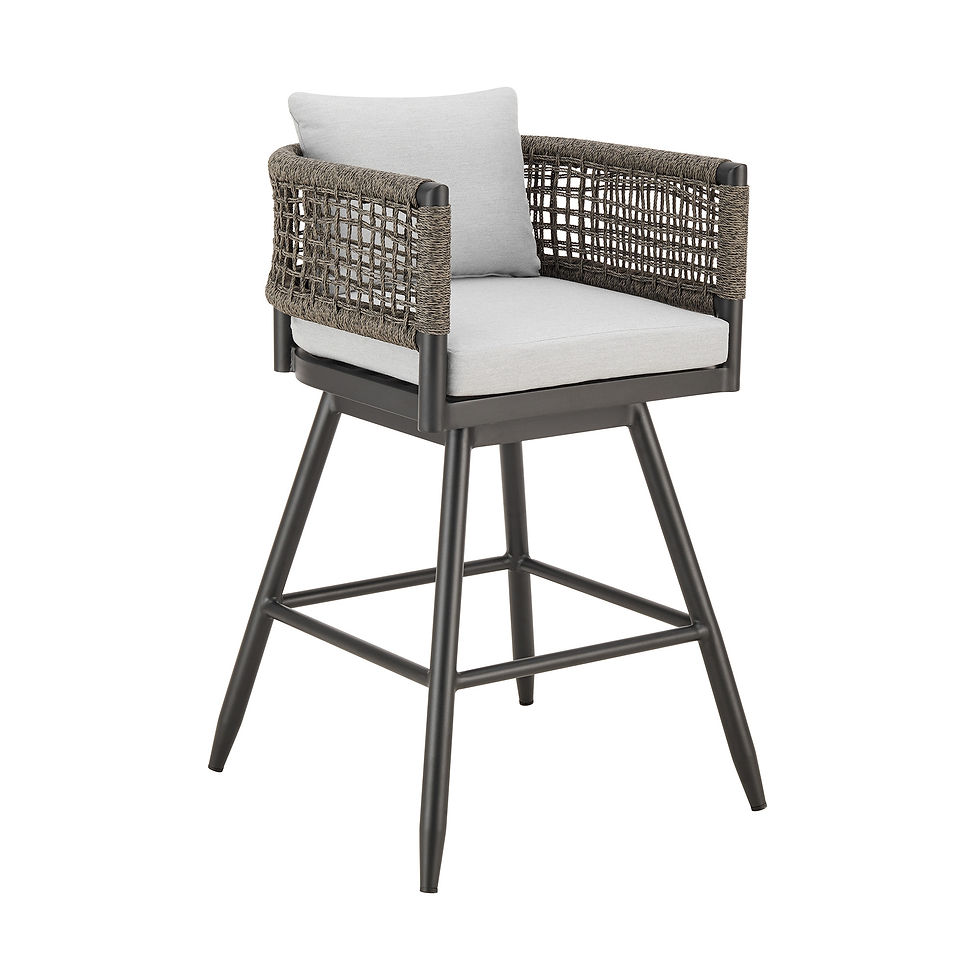 35" Light Gray Metal Swivel Low back Outdoor Counter Height Bar chair with Footr